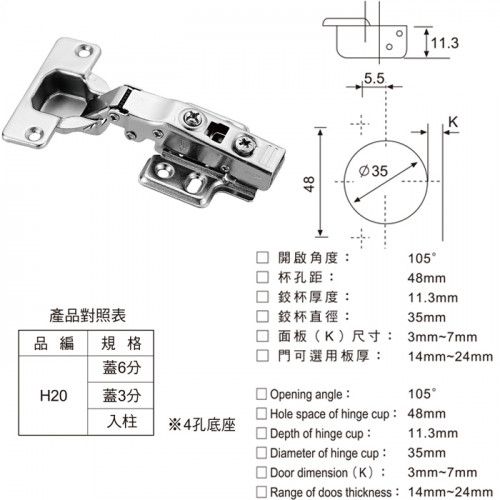 K3505A 餐台隱形床架五金